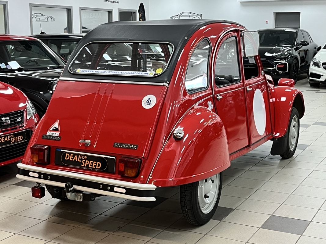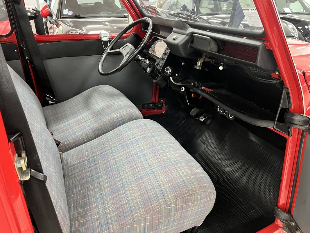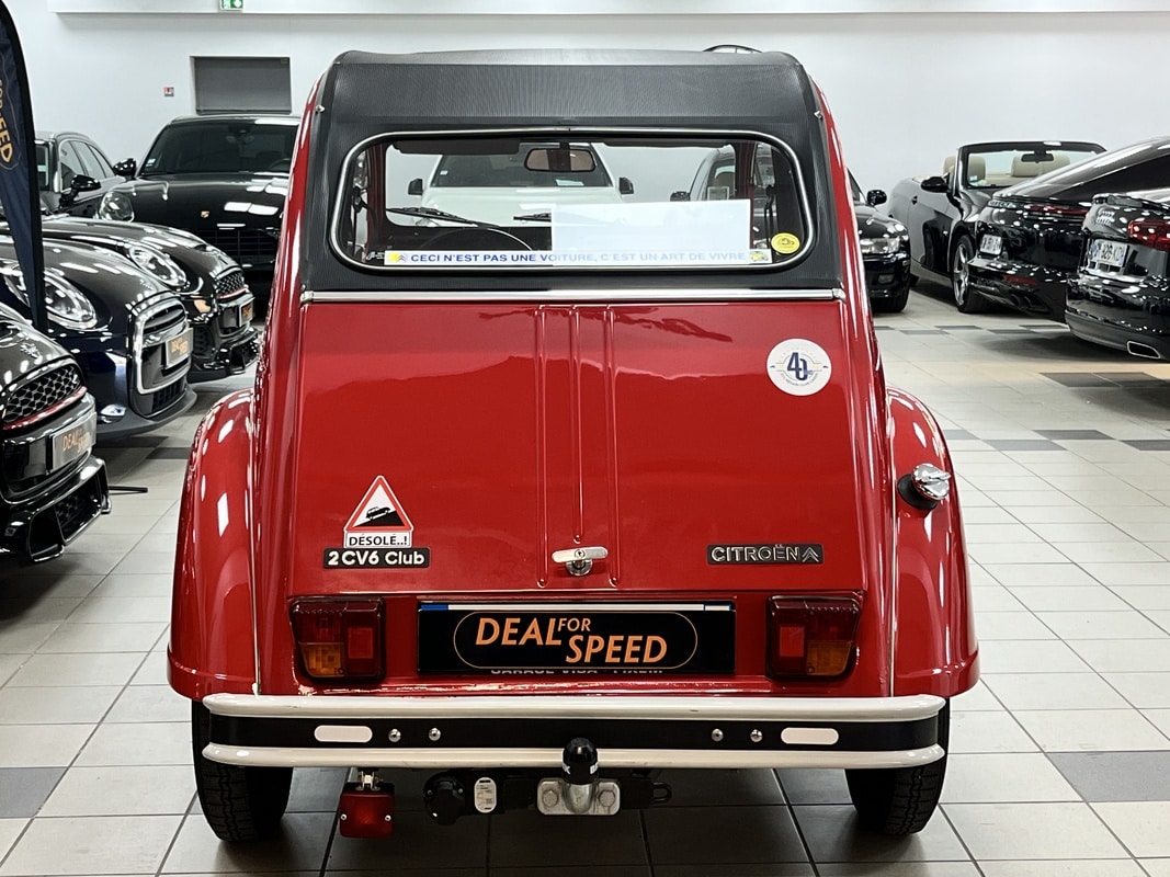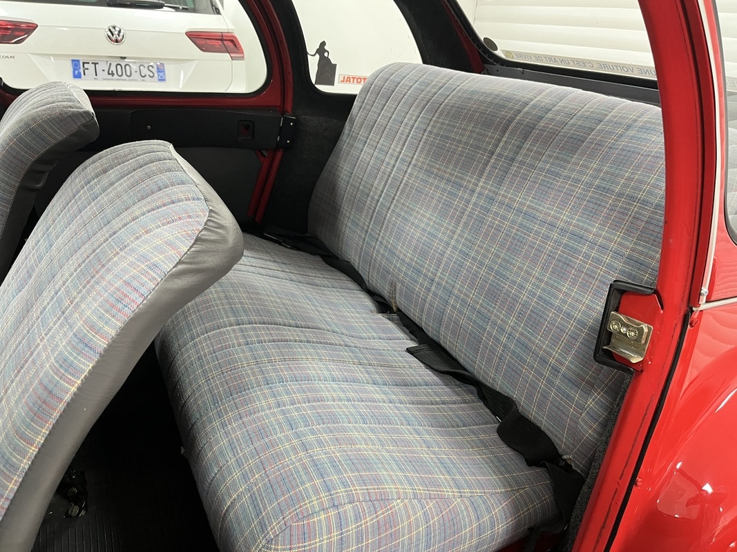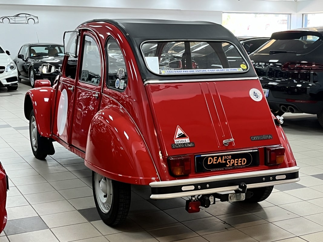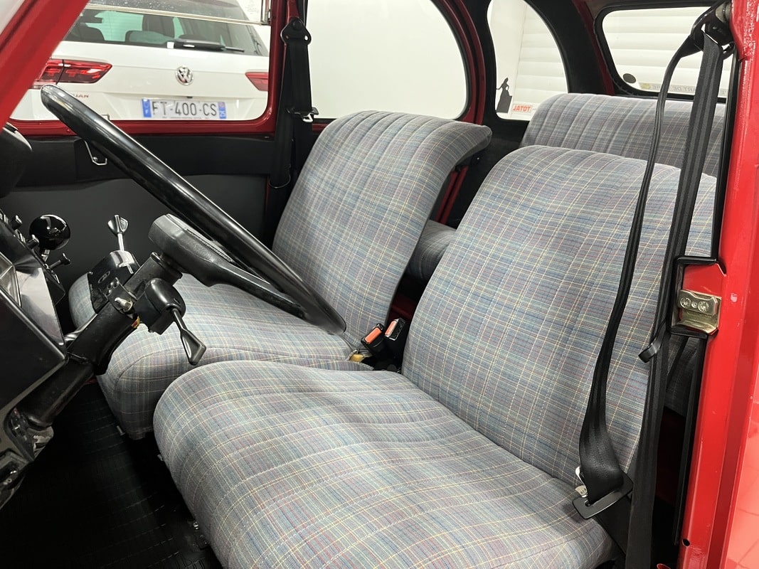 Deal For Speed vous propose à la vente une superbe Citroën 2CV 6 Club de 1986. Ce véhicule a toujours été soigneusement entretenu, et une révision complète vient d’être effectuer chez un spécialise de la marque. Le châssis est d’origine, tout comme la caisse, tous deux en excellent état et parfaitement sains, sans aucune corrosion. La peinture est également d’origine. L’intérieur est en très bonne état et d’origine. Côté mécanique, tout fonctionne parfaitement : démarrage au quart de tour, conduite souple et agréable, fidèle à l’esprit de la 2CV. Aucun frais à prévoir. Véhicule idéal pour collectionneur ou amateur de voitures anciennes, sain et prêt à rouler.